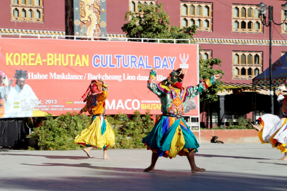 세계의 탈과 상징문화 콘텐츠 확보와 네트워크를 통한 미래문화의 창의를 도모하는 세계탈문화예술연맹(IMACO(International Mask Arts Culture Organization)국제 컨퍼런스의 부속행사로 한국-부탄 문화의 날 행사가 11일 부탄의 수도 팀부 시내 클락 타워 광장에서 개최됐다. 이 자리에는 세계탈문화예술연맹 회장인 권영세 안동시장을 비롯한 세계탈예술연맹 관계자 일행과 킨레이 도지 팀부 시장, 팀부시민 등 수천 명이 참석했다. 11일은 부탄 왕의 생일을 기념하는 축제기간이자, 동시에 부탄의 노동절이다. 특별히 이날에는 많은 문화행사가 개최되었는데, 이 중에서도 단연 백미는 바로 한국-부탄문화의 날 행사이다. 한국공연단이 도착하기 전부터 부탄의 가정문화부에서는 이 행사를 부탄의 국립방송국에서 보름전부터 홍보를 하는 등 특별한 관심을 기울였고, 전통을 중시하는 부탄학생들은 부탄 개국이래 최초로 공연되는 한국 전통문화에 대한 남다른 관심을 보였다.