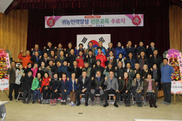 귀농인력양성 전문교육은 초보귀농인들에게 영농기초기술을 교육하여 안정적인 조기정착을 돕기 위해 귀농 3년차 이내인 새내기 농부들을 대상으로 실시하는 교육으로, 2013년 제9기 교육은 60명의 교육생이 수료하여 농업인으로서의 힘찬 발걸음을 시작했다.