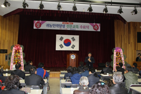 봉화군은 11월 14일 오전 10시, 농업기술센터 대회의실에서 지난 10월 15일부터 실시한 2013년(제9기) 귀농인력양성전문교육 수료식을 가졌다.