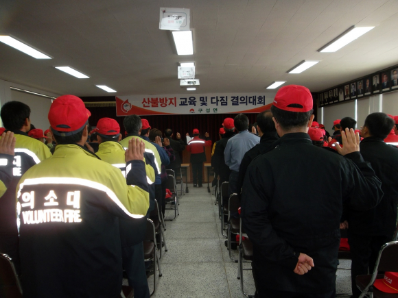 김천시 구성면(면장 구영훈)은 지난 22일 면사무소 2층 회의실에서 관내 기관단체장, 이장협의회, 의용소방대, 새마을지도자, 자연보호협의회, 산불감시원, 자율방범대 등 150여명이 참석한 가운데 산불예방 교육과 발대식을 가졌다.