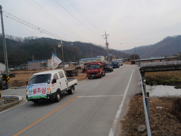 발대식 후 참석자들은 구성파출소 순찰차 및 소방차 각 1대씩을 지원받아 면사무소를 출발해 군도 4호선 상좌원리, 상거1리 등을 경유하여 상거2리, 용호리, 구미리, 미평리, 상원리까지 차량 가두 캠페인을 벌여 지역주민들에게 산불에 대한 경각심을 일깨워 주었다.
