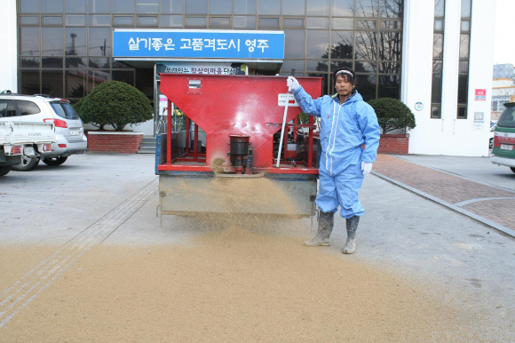 겨울철이 다가옴에 따라 영주시 단산면에서는 폭설과 결빙으로 통행불편을 해소하고, 원활한 교통소통을 유지하기 위해 제설대책이 한창인 가운데 단산면 사천1리에 거주하는 서장석(44)씨의 미담이 화제가 되고 있다.