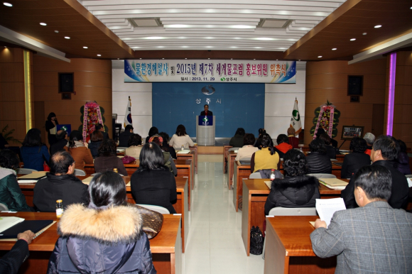 상주시는 11월 29일 지난 10주동안 상주시기후변화센터에서 전문교육인 『물환경해설반』교육을 이수한 45명에 대해 물환경해설사 및 2015년 제7차 세계물포럼홍보위원으로 위촉했다.