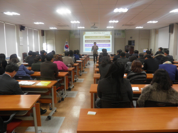 이날 연수는 직장인의 스트레스와 힐링, 감성코칭&행복힐링, 행복한 공직자 순으로 감성 코칭 행복 힐링 5대 실천행사로 감사하기, 칭찬하기, 왓칭하기, 긍정언어로 말하기, 박수하며 크게 웃기 등에 대해 시종일관 화애해한 분위기속에서 약 90분간 진행되었다. 직장인들의 행복 힐링을 각종 사례 중심으로 일목요연하게 안내하여 직원들의 뜨거운 호응을 얻었고 행복힐링 실천을 통한 행복지수 상승으로 청내 민원친절 마인드를 향상 시키는 계기가 되었다. 또한 행복힐링의 생활화로 자기성찰의 시간을 가지게 되면 자신이 하고 있는 업무에 대한 사명감, 열정, 겸손 등의 바람직한 공직자의 자세가 저절로 확립된다는 것을 강조했다. 손수성 교육장은 “이번 연수로 행복이 넘치는 직장분위기 조성의 훌륭한 기회가 되었으며, 늘 칭찬하는 마음으로 상대방의 자존감을 세워주는 자세를 가지고 교육수요자 만족도 향상을 위해 서도 적극 노력해줄 것”을 당부했다.