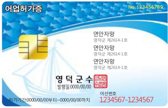 |  | | | ⓒ GBN 경북방송 | | 영덕군(군수 김병목)은 2014년 1월부터 연안어업허가를 동일한 날짜에 일제히 갱신하는 동시어업허가제를 도입하고 IC카드가 부착된 전자어업허가증을 발급한다고 밝혔다.
