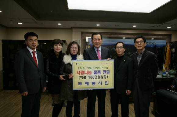 두레봉사단(회장 배우호, 45세)에서는 5일, 겨울이불 20채(시가 1,000천원 상당)를 성주군에 기탁했다.