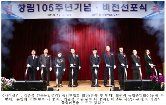 기념식에는 이상무 사장을 비롯한 임직원, 최규성 국회 농림축산식품해양위원회 위원장과 홍문표 국회의원, 윤명희 국회의원 등 500여명이 참석했다.