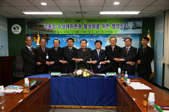 상주시는 9일 시청 소회의실에서 성백영 상주시장, 한국해양소년단연맹 백석현 총재(SK해운(주) 대표이사), 민홍기 부총재, 오세경 사무총장 등이 참석한 가운데 낙동강 수상레저관광 활성화를 위한 협약을 체결하고 낙동강을 중심으로 수상레저와 지역관광 활성화를 위한 상호협력을 약속했다.