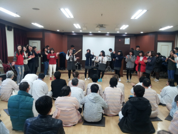 이날 학교장은 인사말을 통해 “이제는 우리 학생들도 학교에서 배운 재능을 살려 어려운 이웃이나 질병으로부터 고통 받고 있는 사람들을 위해 사랑 나눔을 실천함으로써 따뜻한 공동체 생활을 만들어 가는데 노력하고, 여러분들은 아픔의 고통에서 벗어나 빠른 회복을 기원드린다.”고 하였다. 위문 봉사활동에는 동아리활동 시간을 활용하여 틈틈이 연습한 밴드동아리(J2B)와 댄스동아리(See through) 소속 학생 25명이 참가하였으며, 밴드동아리는 환우들의 회복을 기원하며 10여곡을 연주하였고, 댄스동아리는 3차례에 걸쳐 아름다운 율동을 선보였다. 참여한 학생들은 공연 도중 마음이 뜨겁고 뭉클해져 눈시울을 붉혔지만, 환우들은 학생들과 함께 흥에 겨워 노래도 부르고 춤을 추기도 하면서 즐거운 한 때를 보냈다.