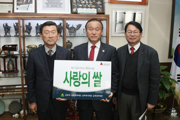 |  | | | ⓒ GBN 경북방송 | | 경주법주(주)(대표이사 김동구)는 24일 경주시청을 방문하여 홀로어르신 및 어려운 가정을 위해 써 달라며 백미 2,000kg(오백만원상당)을 전달했다.