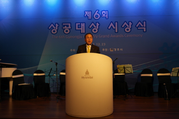 |  | | | ⓒ GBN 경북방송 | | 경주상공회의소(회장 김은호)는 오는 23일(월) 18시 경주 현대호텔에서 최양식 경주시장, 정수성 국회의원, 정석호 경주시의회 의장, 상공의원 및 지역 기업인, 유관기관 등 130여명이 참석한 가운데 「2013년 상공대상 시상식 및 기업인 송년의 밤」을 개최했다.