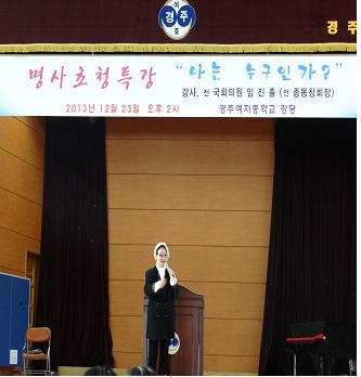 23일 행사는 제15대,16대 재선의원이시고, 전 총동창회장님이신 임진출 대선배님께서 후배를 위해 ‘나는 누구인가?’ 란 주제로 강연을 해주셨다. ‘여러분은 한가정의 딸로서 사회의 일원으로서 소중한 인격체입니다, 따뜻한 가슴으로 나눔과 배려를 실천하는 아름다운 사람으로 성장하여 세계로 뻗어가는 대한민국의 꼭 필요한 인재가 되기를 바랍니다. 항상 자부심을 가지고 목표를 향해 나아가기를 바라며, 시간과 기회는 기다려 주지 않습니다. 지금 이 순간을 내 것으로 만드십시오. 그리고 여러분의 인생을 특별하게 만드십시오.’ 이란 강연의 내용을 경청하며 경주여중 학생들은 의미 있는 시간을 가졌다.