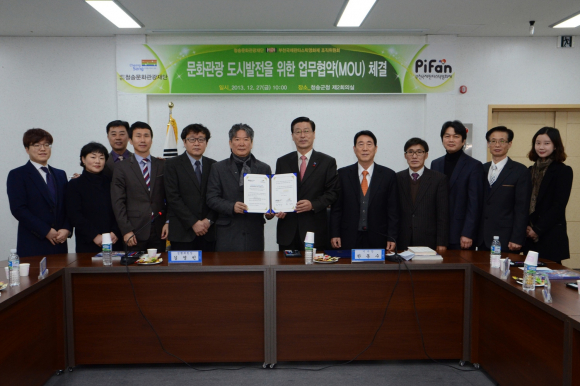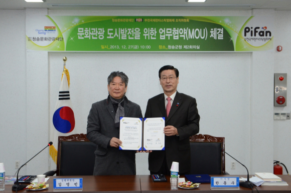 청송문화관광재단과 부천국제판타스틱영화제(이하PiFan)가 27일 오전10시 청송군청 제2회의실에서 문화관광 도시발전을 위한 업무협약식(MOU)을 체결했다.