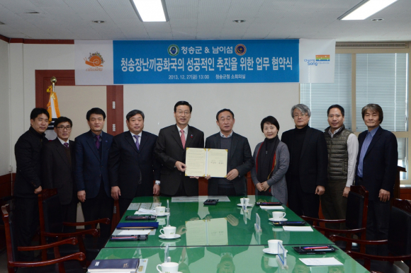 이날 한동수 군수와 남이섬 강우현 대표를 비롯한 남이섬 이계영 부사장, 전명준 전무이사, 민경혁 기획조정실장등 10여명이 참석했으며,