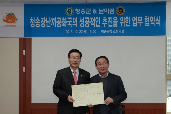 청송군과 남이섬은 청송장난끼공화국 운영에 따른 사업 공동참여와 다양한 체험 프로그램 운영 및 관리 등 관광활성화를 위한 상호 협력체계를 구축하고 협약체결에 따른 성과를 서로 공유하며 상호간 필요하다고 인정되는 사항에 대하여는 구체적 협력 방안을 함께 모색하기로 했다.