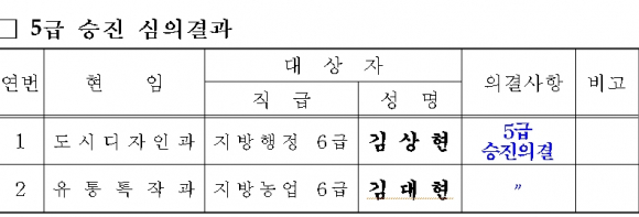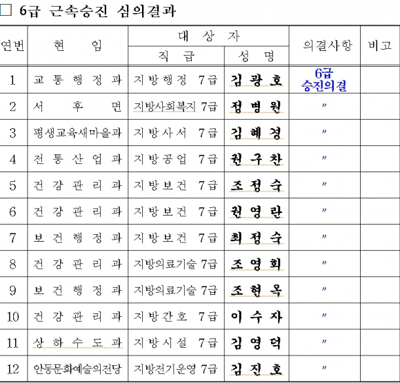 안동시, 공무원 승진 대상자 내정