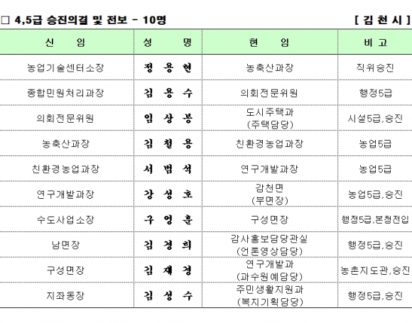 김천시 공무원 승진 대상자 내정