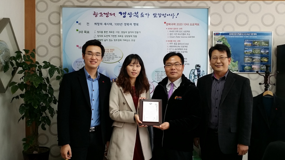 (왼쪽부터 원소진 윤대길 회장, 서지혜 총무부장, 경상북도 김학홍 창조경제산업실장, 김승열 사무관)