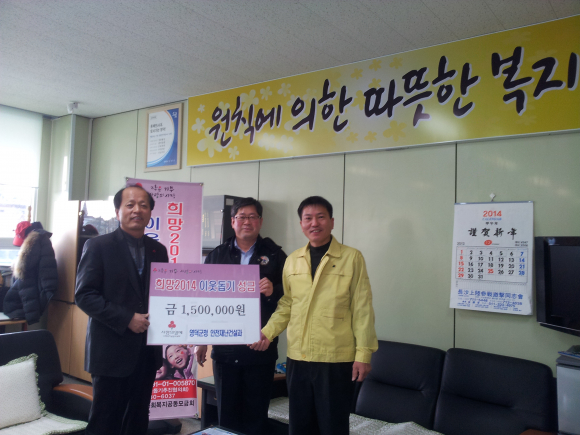 영덕군(군수 김병목)에서는 연말연시를 맞아 ‘작은기부, 사랑의 시작입니다’ 라는 슬로건으로 이웃돕기성금 모금을 진행하고 있는데 이에 동참하여 영덕군청 안전재난건설과 직원들이 지난 30일 150만원의 성금을 기탁하였다.