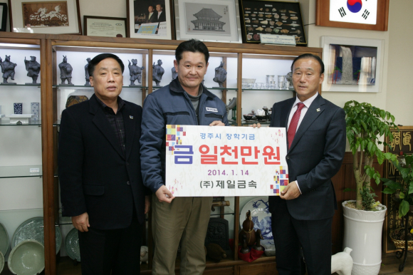 (주)제일금속(회장:조덕수)은 14일 금 일천만원(₩10,000,000원)을 경주시 장학회에 기탁