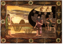 물고기 복장을 한 엔키(하나님)와 우트나피쉬팀(노아)의 방주