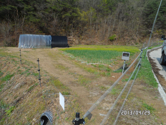 금년 시에서 지원하는 사업은 전기목책 시설, 전기목책기란 상용전기나 배터리, 태양전지 등을 이용하여 1초에 한번정도 7,000~9,000V의 특수 고전압을 발생시켜 강선 울타리에 흘려보냄으로서 멧돼지, 고라니 등 유해야생 동물이 울타리에 접근 시 전기충격을 통해 퇴치하는 시설이다.