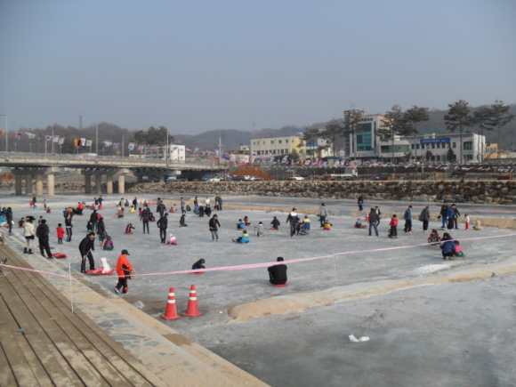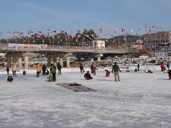 봉화군은 겨울철을 맞아 청소년들에게는 건전한 여가활동과 어른들에게는 옛 추억을 떠올리는 얼음썰매장을 봉화읍 내성대교 하단 하천변에 개장했다.