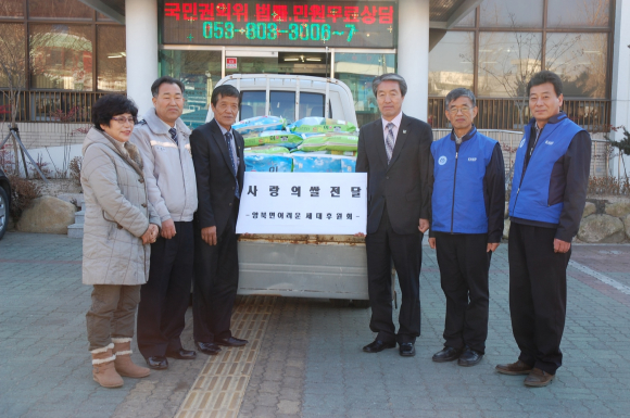 『양북면 어려운세대 후원회』는 매년 민족고유의 명절인 설과 추석에 관내 저소득층인 장애인․독거노인․다문화가정 등 생활이 어려운 가정에 쌀과 생필품을 지원하며 훈훈한 이웃의 정을 나누어 왔다. 강태희 회장은 “앞으로도 지속적으로 소외된 이웃과 함께하는 후원회가 될 것”이라고 말하며, “어려운 분들의 생계에 조금이나마 보탬이 되기를 바란다.”고 말했으며, 이에 양북면장(한진억)은 변함없이 이웃의 정을 나누는 어려운세대 후원회 회원들에게 감사의 마음을 전하고, 앞으로도 지역사회에 지속적인 관심을 가져줄 것을 당부하였다. |