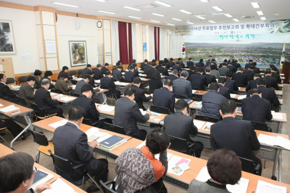 “글로벌 문화융성도시 시민이 행복한 경주”라는 시정 구호를 내건 경주시는 27일 오전 8시30분 시청 대회의실에서 최양식 경주시장을 비롯한 부시장, 국․소장, 담당관, 과장, 사업소장, 읍면동장 등 전간부공무원 100여명이 참석한 가운데 “2014년 주요업무 보고회”를 가졌다.
