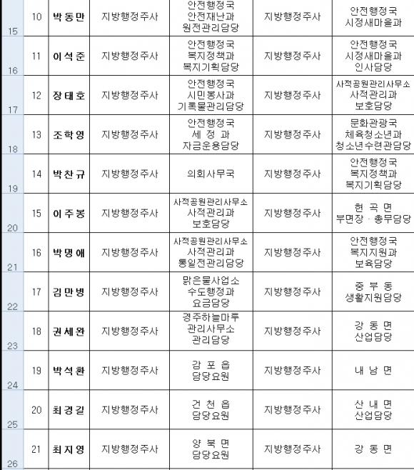 경주시 인사발령