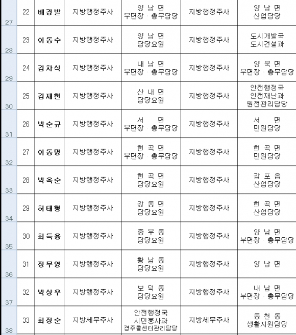 소수직렬 사기진작 방안으로 일선 행정 읍면동에 부면장 직위부여