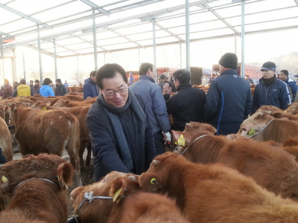 오전 8시부터 시작된 이번 행사에는 김주영 영주시장도 참석하여 한우값 하락과 경영비 부담으로 어려움을 겪고 있는 소 사육 농가와 경매업무에 열중하는 축협 임직원들을 일일이 격려하고 축산 현장의 목소리를 경청했다.