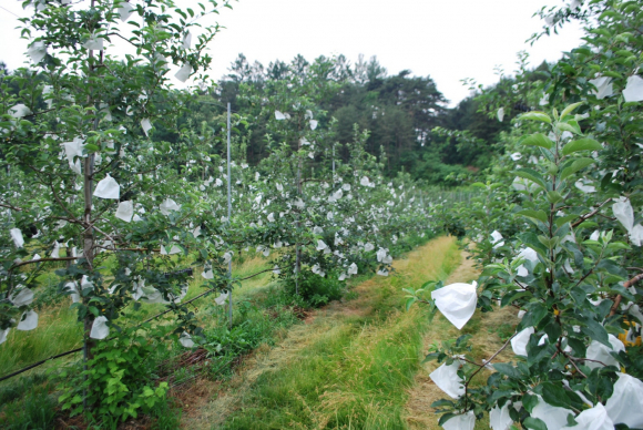 산업화와 더불어 농촌노동력이 감소하고 효과적인 농약이 많이 개발 보급 되면서 봉지재배는 기피되고 봉지를 씌우지 않는 무대재배가 일반화되어 가는 추세이었다. 그러나 아직까지도 부패병, 탄저병 등의 방제와 동녹발생이 심한 골든데리셔스 품종의 재배에 있어서는 봉지재배가 가장 안정적인 재배 방법이다. 근래들어 우리나라 사과(후지)의 해외 수출량이 급증하면서 상대국의 기호에 부응하기 위한 과실 외관의 중요성이 크게 강조됨에 따라 수출용 과실 생산에 있어서는 봉지재배가 다시 널리 보급되어 수출사과의 품질고급화 및 안정적인 생산기반 조성으로 국제시장에서의 경쟁력 확보와 수출농가 소득 증대에 크게 기여할 것으로 기대된다. |