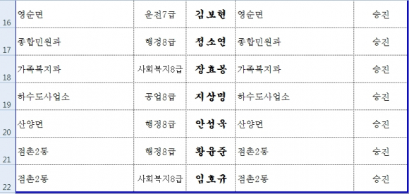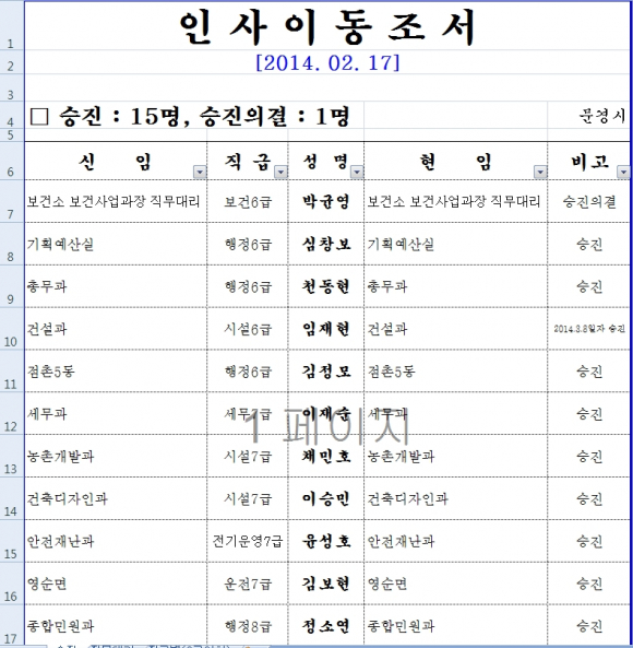 2월 17일자 문경시 인사이동 현황