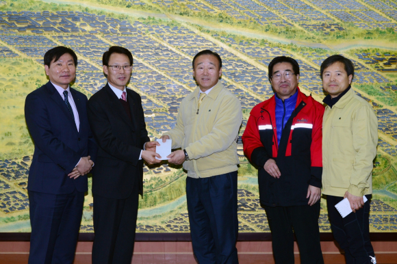 총력을 다하는 경주시 제설작업에 대구은행 서라벌본부에서 격려성금 지원