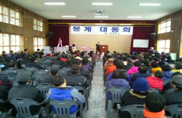 김천시 봉산면 봉계 대동회(회장 조기현)에서는 14일 오전11시 봉계초등학교 강당에서 관내 기관단체장 및 주민 350여명이 참석한 가운데 지난 한해동안 활동을 결산하고 2014년 새해 힘찬 출발을 위한 봉계 대동회가 열렸다.