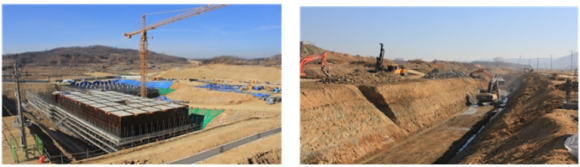 [좌) 하수처리장 지하2층 공사전경, 우) 공동구 터파기 공사전경]