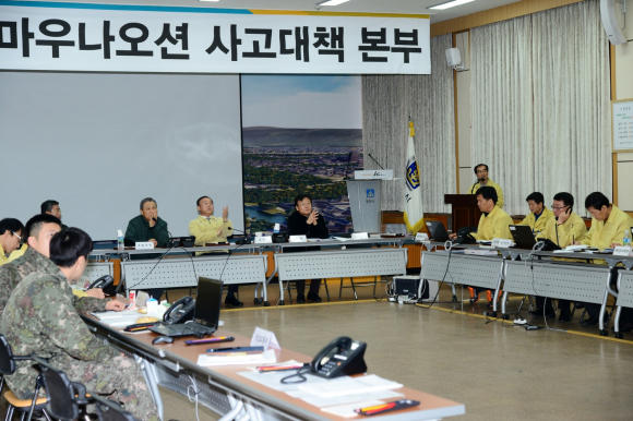 경주시는 사고 발생 직후 마우나오션 재난안전대책본부를 운영해 사고 수습에 총력을 기울이고 있다. 최양식 경주시장의 현장 방문과 함께 비상 소집된 공무원 1,500여명이 구조 및 수습에 나섰다. 현장에는 굴삭기, 크레인, 제설차, 구급차 등 총 125대의 장비와 공무원, 해병대 1사단, 7516부대 1대대 등 군인, 민간인, 경찰, 소방, 의용 소방 등 1,457명의 인력이 동원되었다. 사고수습과 구조 활동은 경주소방서를 비롯하여 인근 소방서가 동원되어 인명구조와 환자 수송에 즉각 대응했다.