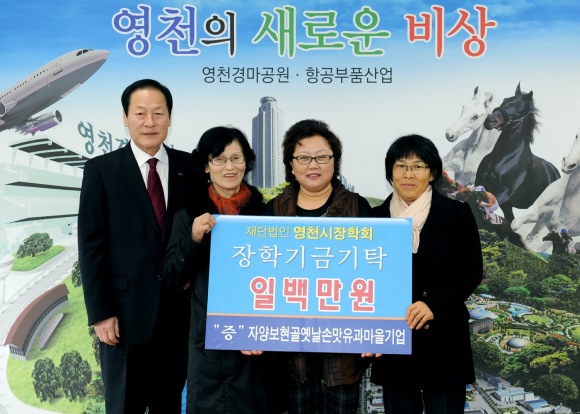 지난 18일 자양보현골옛날손맛유과마을기업(대표 구신숙)에서 100만원,(주)대구은행(은행장 하춘수)에서 3,000만원을 명품교육도시 조성과 지역인재양성을 위해 재)영천시장학회에 각각 전달하였다.