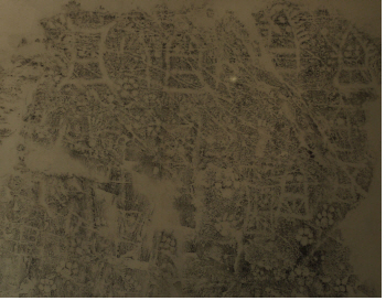 석장리 암각화 탁본 부분, 오른쪽 중앙에 발자국이 그 아래쪽에 곰발바닥이 여러 개 보인다.