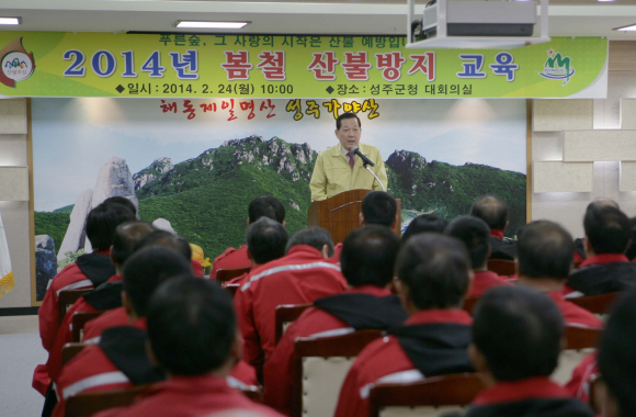 성주군(군수 김항곤)은 산불발생위험시기인 3월 시작 전 산불예방을 위한 결의를 다지고 안전사고를 방지하기 위하여 산불전문예방진화대 및 산불감시원 등 100여명을 대상으로 2월24일 봄철 산불방지 교육을 실시했다.