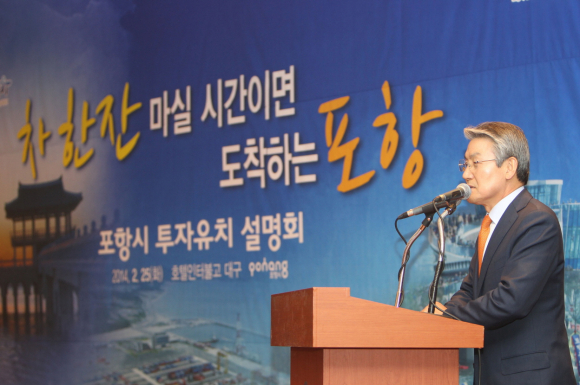 포항시는 25일 대구 호텔인터불고에서 태왕E&C 등 대구·경북지역의 50여 개 기업과 부동산투자전문가, 출향기업인, 언론 등 약 200여 명이 참석한 가운데 투자유치 설명회를 개최했다.