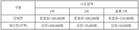 ※ 본선경기는 예선전 경기후 추첨으로 실시