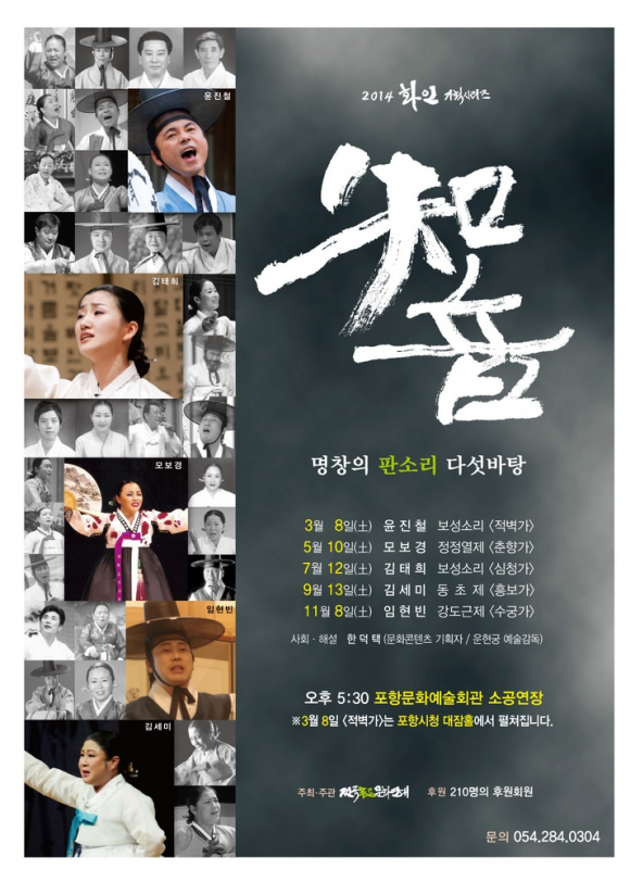 사)전국푸른문화연대(이사장 이재원)가 <지음-명창의 판소리 다섯바탕> 연간계획을 발표했다. 올해로 5년째를 맞는 지음은, 이재원 화인피부비뇨기과 원장이 고향인 포항에서 대표적인 우리 전통유산 판소리를 알리기 위해 지난 2010년 시작되었다.