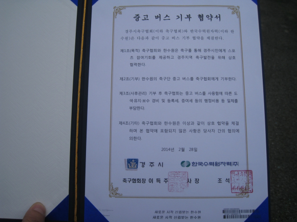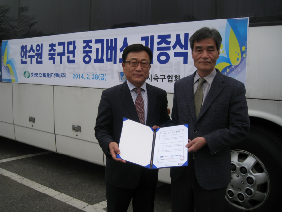 한국수력원자력. 축구단 중고버스 경주시 축구협회 기증식 시행