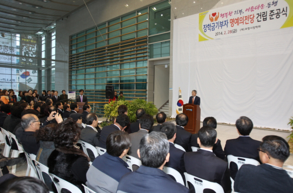 유치원생의 고사리 손에서, 자녀결혼식 축의금, 기초생활수급자 할머니의 폐지 등 기업체와 포항시민의 정성이 미래의 인재양성을 위한 장학기금 339억원을 조성했다. (재)포항시장학회(이사장 박승호)는 지역의 우수인재 양성을 위해 따뜻한 나눔을 실천한 기부자들의 뜻을 기리기 위해 지난달 28일 포항시청 중앙홀에서 ‘장학기금 기부자 명예의 전당 제막식’을 가졌다 이번행사는 300억원 장학기금조성 달성을 기념하고 지역인재양성을 위해 함께 해준 기부자들의 고귀한 뜻을 깊이 새기고 기부시민의 자긍심과 기부문화를 후손에게 남기기 위해 마련됐다 장학기금 기부자 명예의 전당은 기부자나 가족이 쉽게 접근할 수 있고 보존이 쉽도록 포항시청 현관 벽면에 ‘기부자의 벽’ 형태로 가로 8m× 세로 6m의 크기로 제작되어 있다
