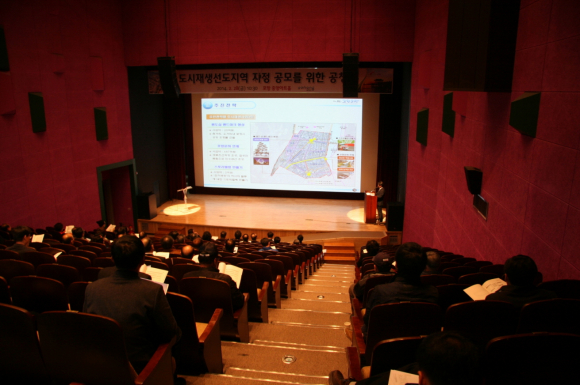 이와 관련해 시는 도시재생선도지역 지정 공모 전 지역주민, 관계전문가의 의견을 받아 합리적이고 실질적인 사업구상을 세우기 위해 지난달 28일 시립중앙아트홀에서 주민공청회를 개최했다.