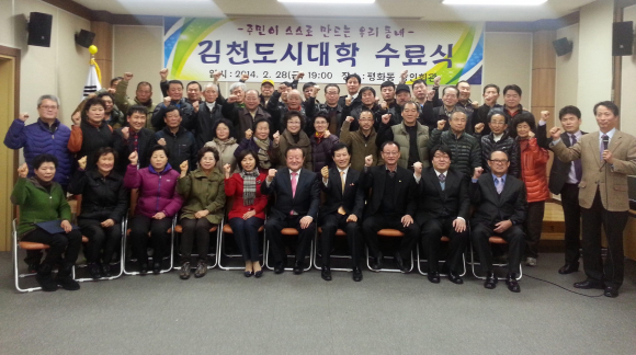 김천시는 지난달 28일 김천시 평화동 상인회관 2층 회의실에서 도시재생주민협의체, 지역주민 등 50여명이 참석한 가운데 김천도시대학 수료식을 가졌다.