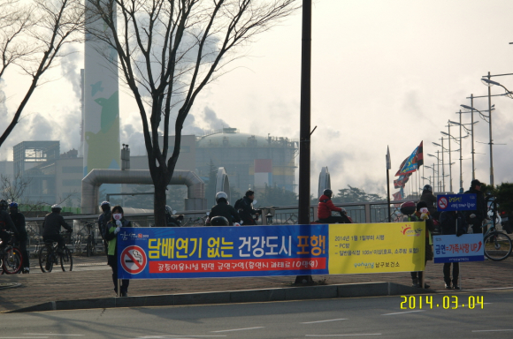 포항시 남구보건소는 4일 출근시간을 이용해 형산교에서 ‘담배연기 없는 건강도시 포항’이라는 슬로건 아래 금연문화 정착을 위한 캠페인을 실시했다.
