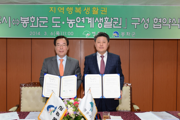 지난해 7월 새 정부의 지역발전정책이 발표 되면서 봉화군과 영주시는 지역행복생활권 구성 실무추진단(T/F)을 설치하고, 농촌형의 봉화군과 도시적 특성을 가지고 있는 영주시와 하나로 묶는 도·농연계생활권 구성(안)을 지난 1. 10일 지역발전위원회에 제출하고 2014. 3. 6일「지역행복생활권 구성 협약」을 체결하게 되었다.